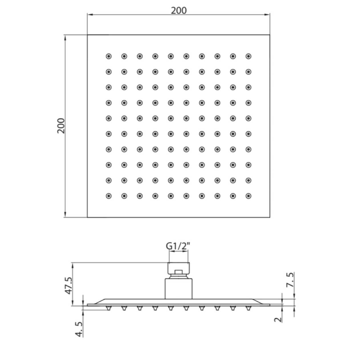 An ultra-thin and angular shower head with a stunning, eyecatching style that is certain to enhance any modern bathroom suite. It is constructed from durable stainless steel and is supplied with a G 1/2" inlet connection.