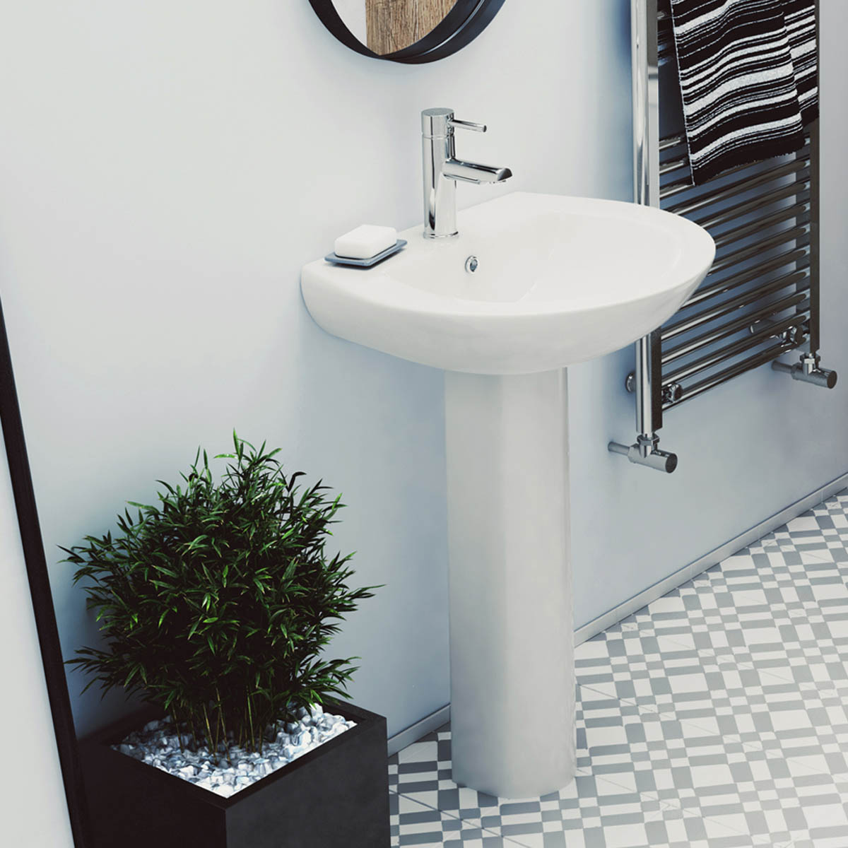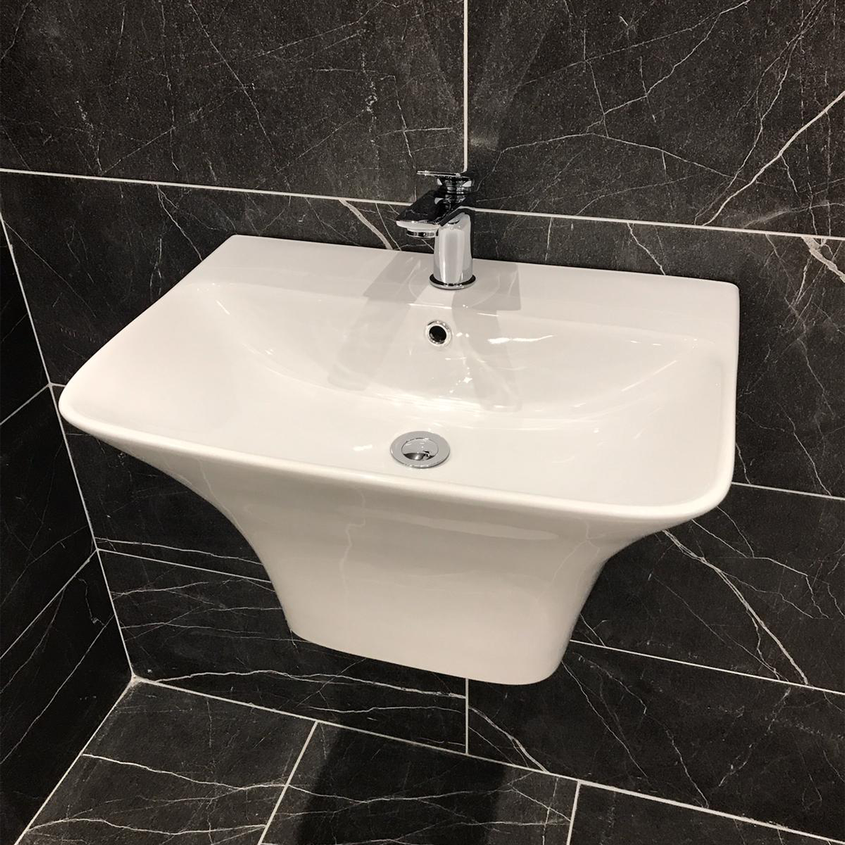 Traditional floorstanding pedestal basins do tend to take up more space due to the pedestal underneath. However, they can create a classic, elegant look and are often favoured in larger bathrooms with more room to spare – plus you can also get semi-pedestals which float off the floor and save space in that way.