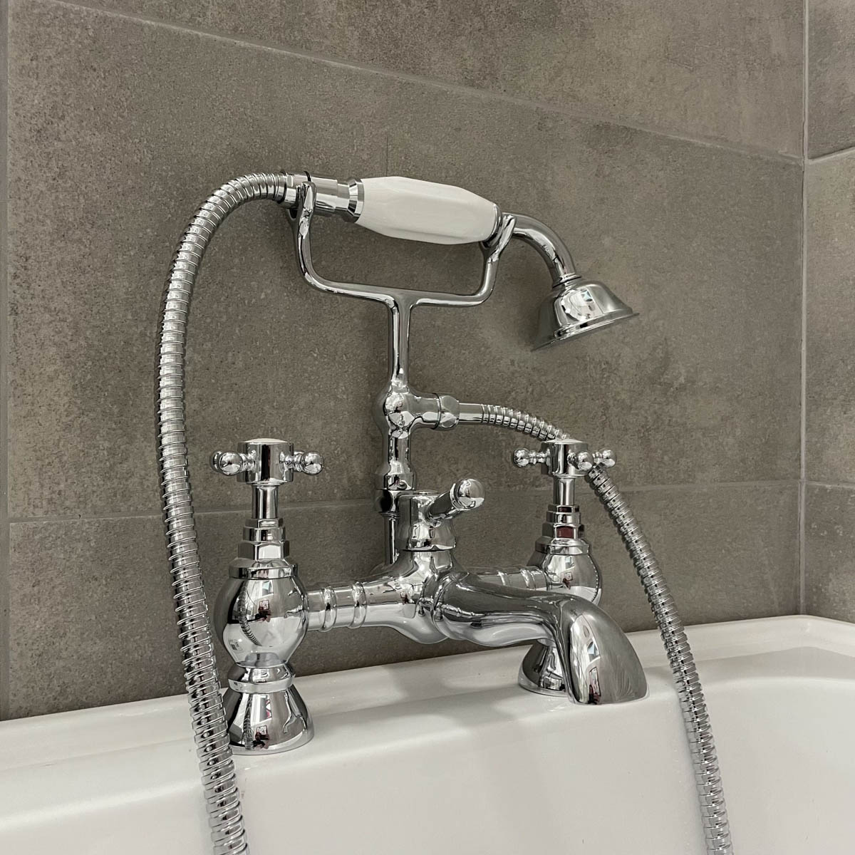 The second bath tap available for instant pick-up is the Eliseo Ricci Traditional English Balmoral Bath-shower Mixer, this time a more traditionally designed product with a classic chrome finish. The double deck-mounted taps feature crosshead handles while the shower handset has an elegant, vintage style, combining chrome with a white handgrip. This sits above the two taps, resting within easy reach for added convenience.