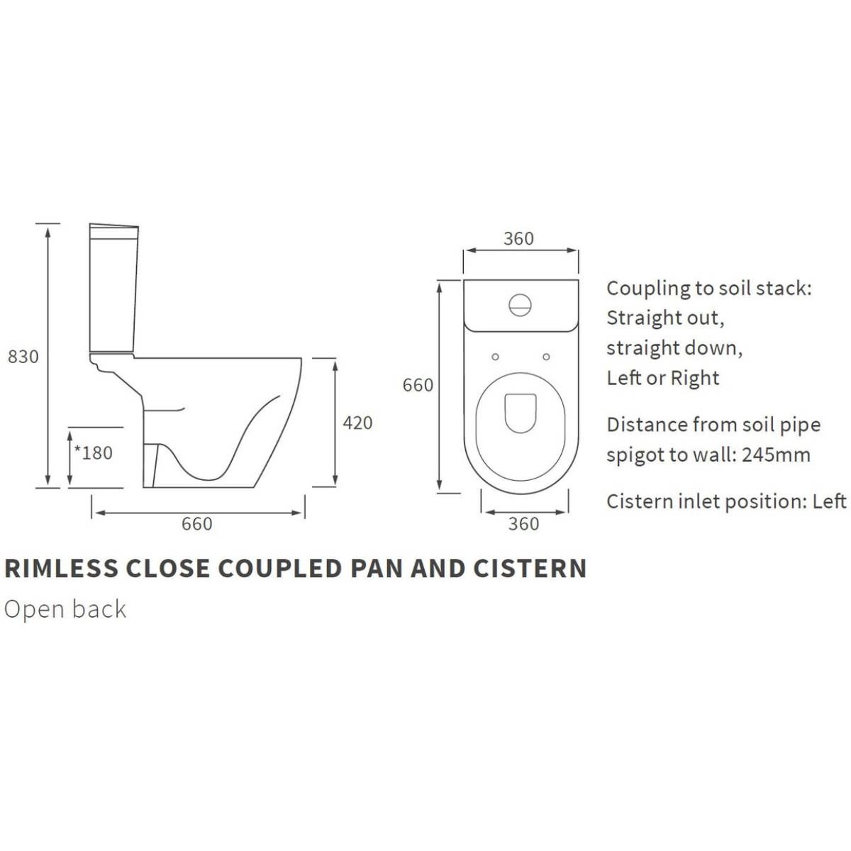 • Distance from soil pipe spigot to wall: 245mm