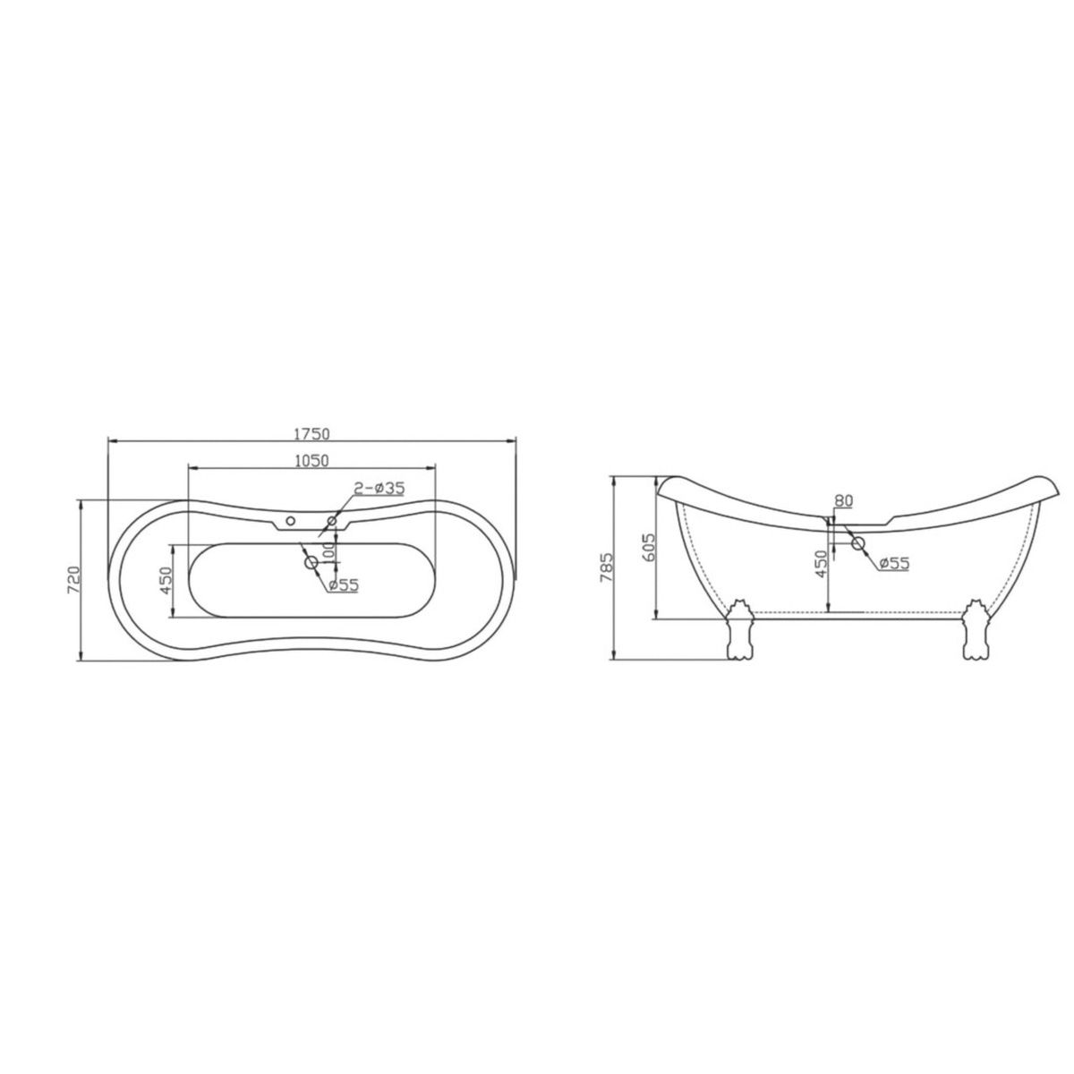 Clara 1750mm Double Ended Slipper Bath with White Claw & Ball Feet