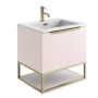 Chevron 600mm Wall Mounted Vanity Unit & Basin with Brushed Brass Frame - Pink