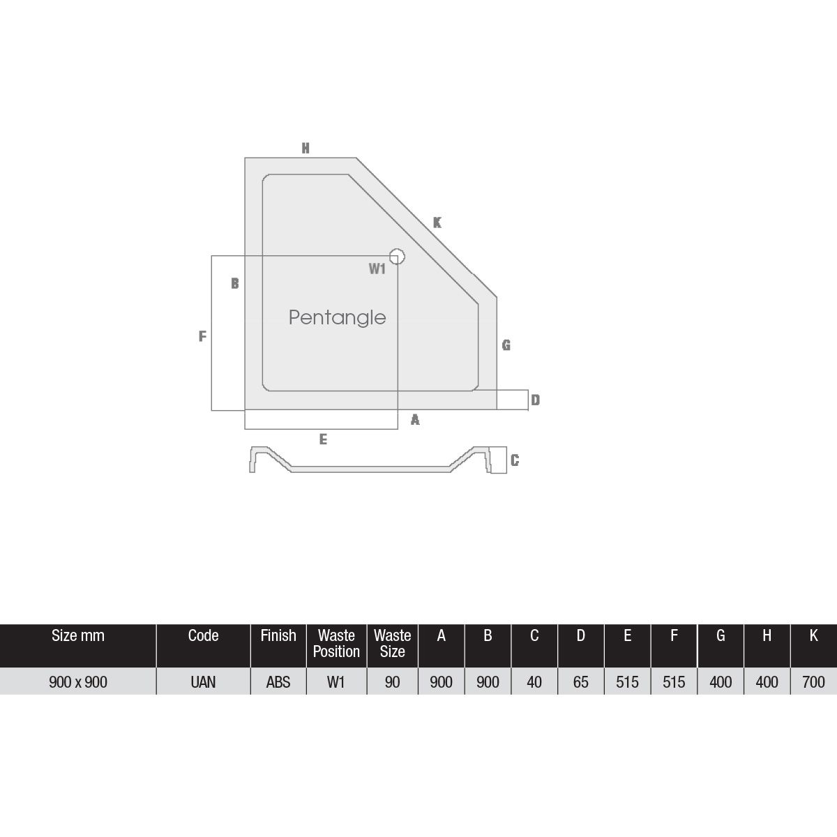 Elements 900 x 900mm Slim Line Pentangle Shower Tray