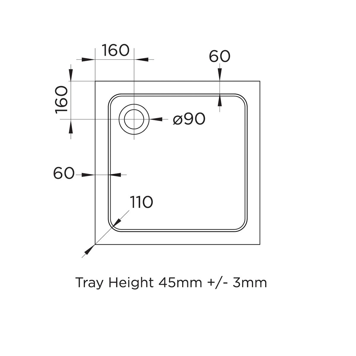 Elements 900 x 900mm Square Slim Line Shower Tray with Corner Waste