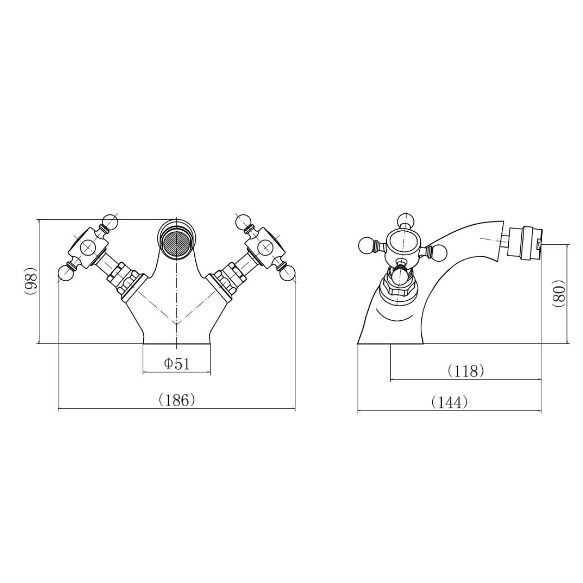 Eliseo Ricci Balmoral Crosshead Bidet Mixer