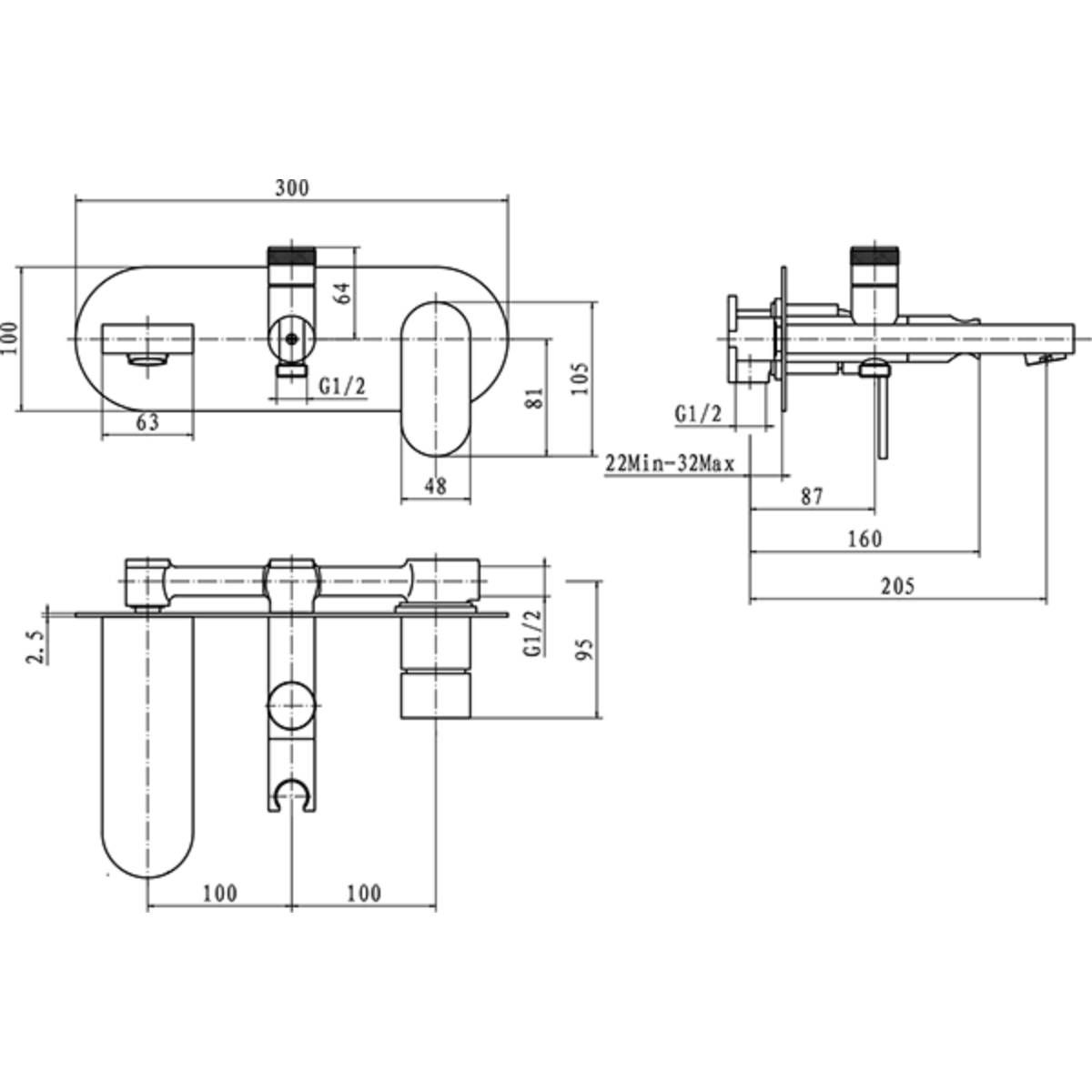 Eliseo Ricci Neo Wall Mounted Bath Shower Mixer