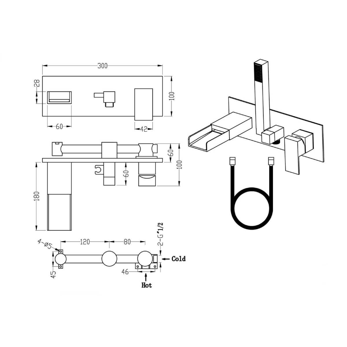 Eliseo Ricci Niagara Wall Mounted Bath Shower Mixer