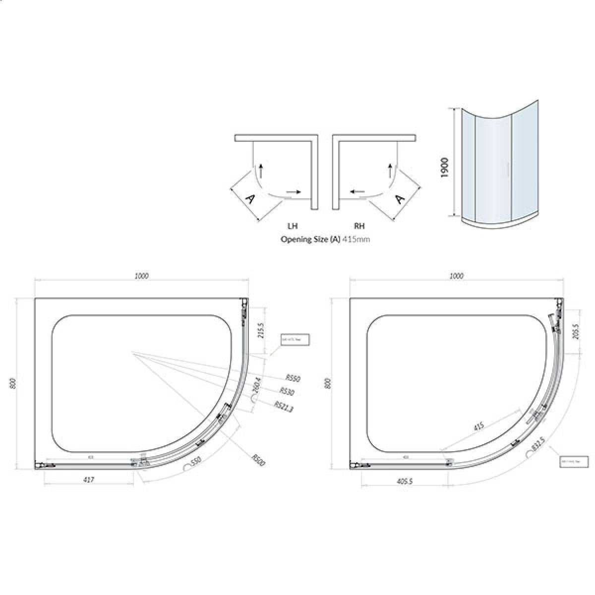 Kiimat Eight² 1000 x 800mm Single Door Offset Quadrant Shower Enclosure