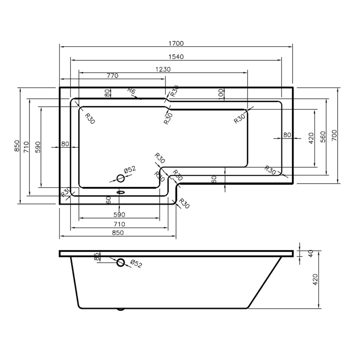 Linea 1700mm L-Shape Shower Bath, Front Panel & Screen - Left Hand
