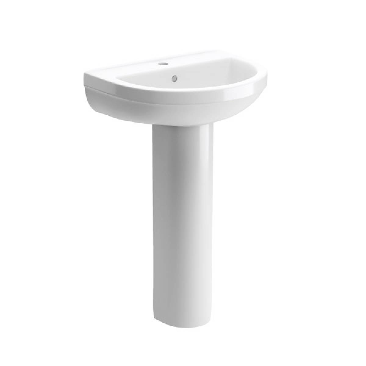 The Laurus Basin with Full Pedestal is a 1 taphole basin with a sleek modern design that's smooth to the touch and finished in a clean gloss white.