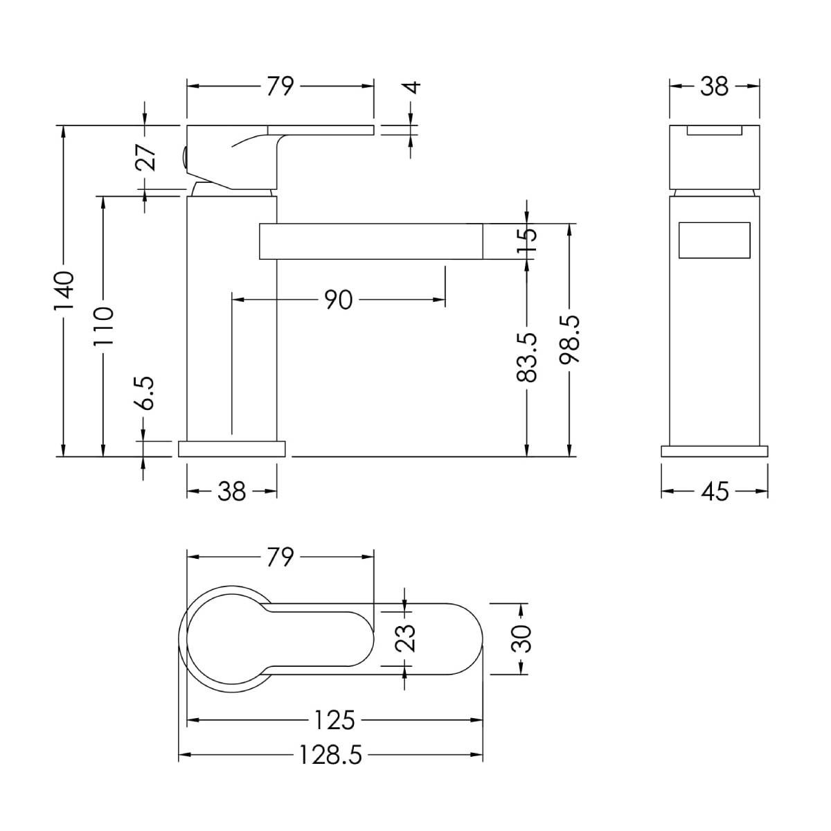 Nuie Arvan Mini Basin Mixer inc. Waste ARV315