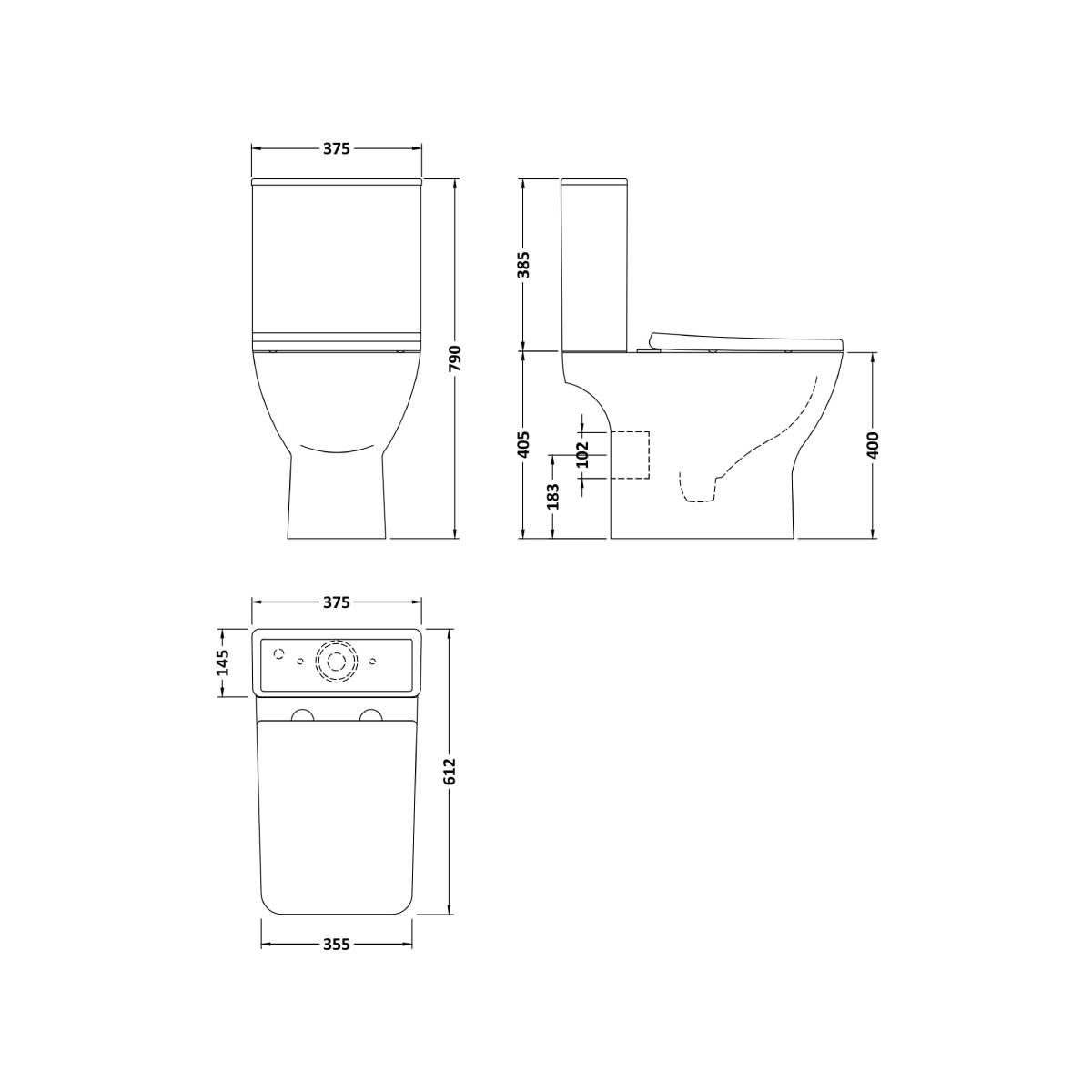 Nuie Ava Rimless Close Coupled Toilet & Soft Close Seat