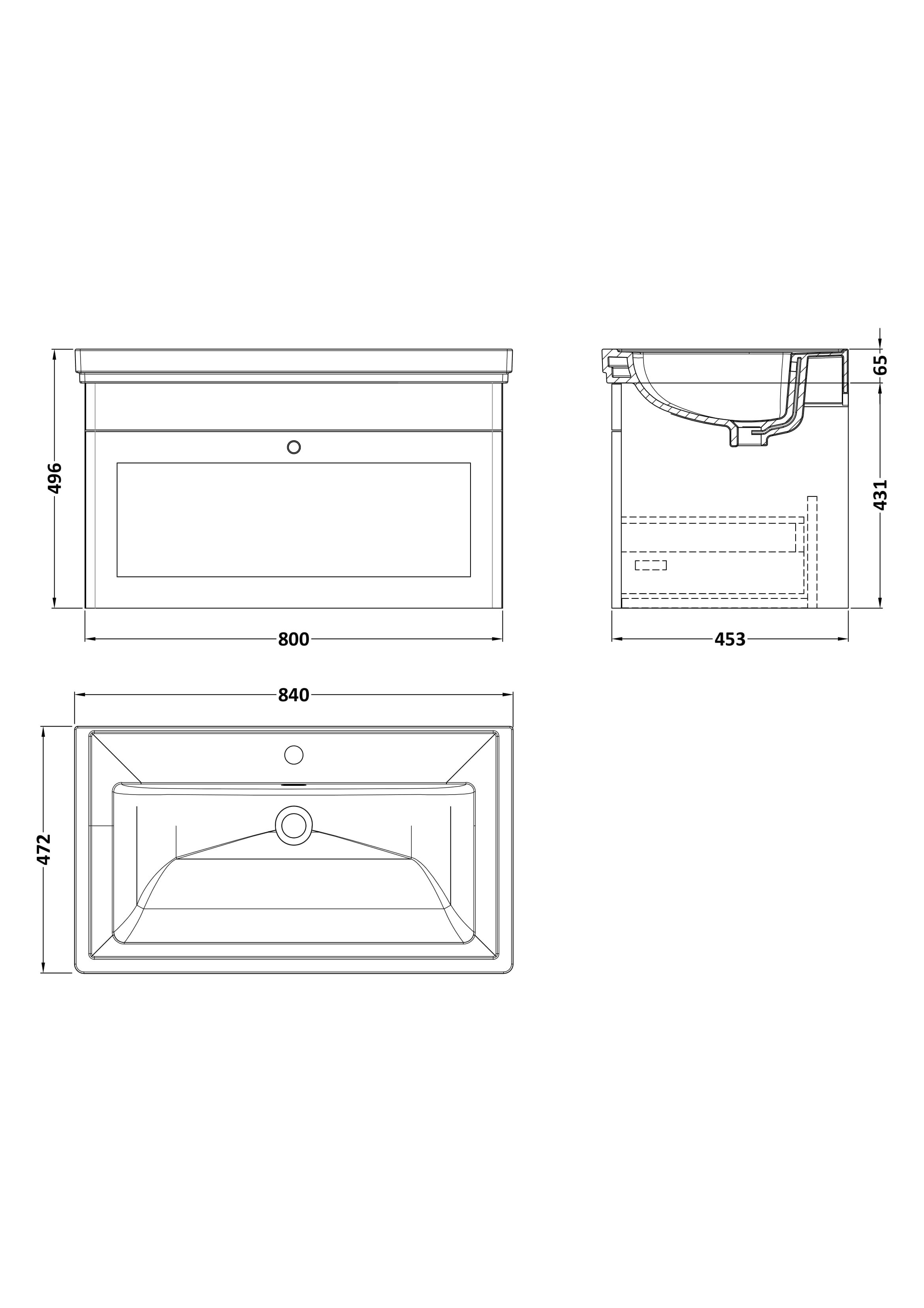 Nuie 800mm Wall Hung 1-Drawer Unit & Basin 1 Tap Hole