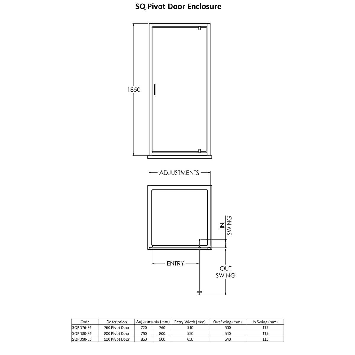 Shower Enclosure Height 1850mm