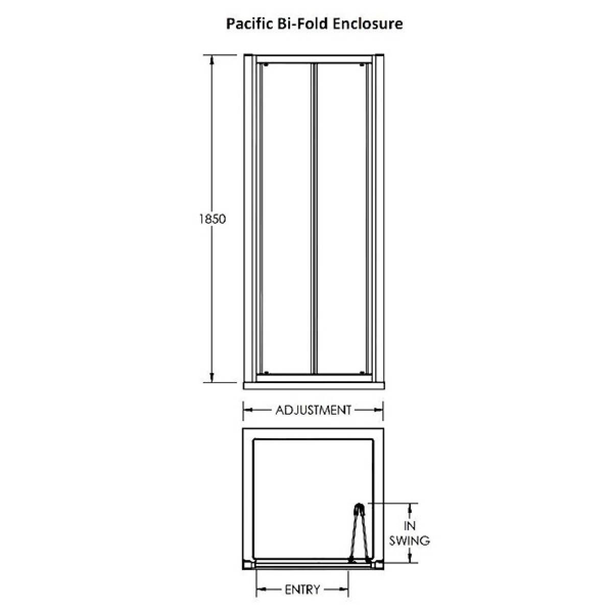 Nuie Pacific 900mm Bi-Fold Shower Door (2800) Chrome Aluminium & Glass