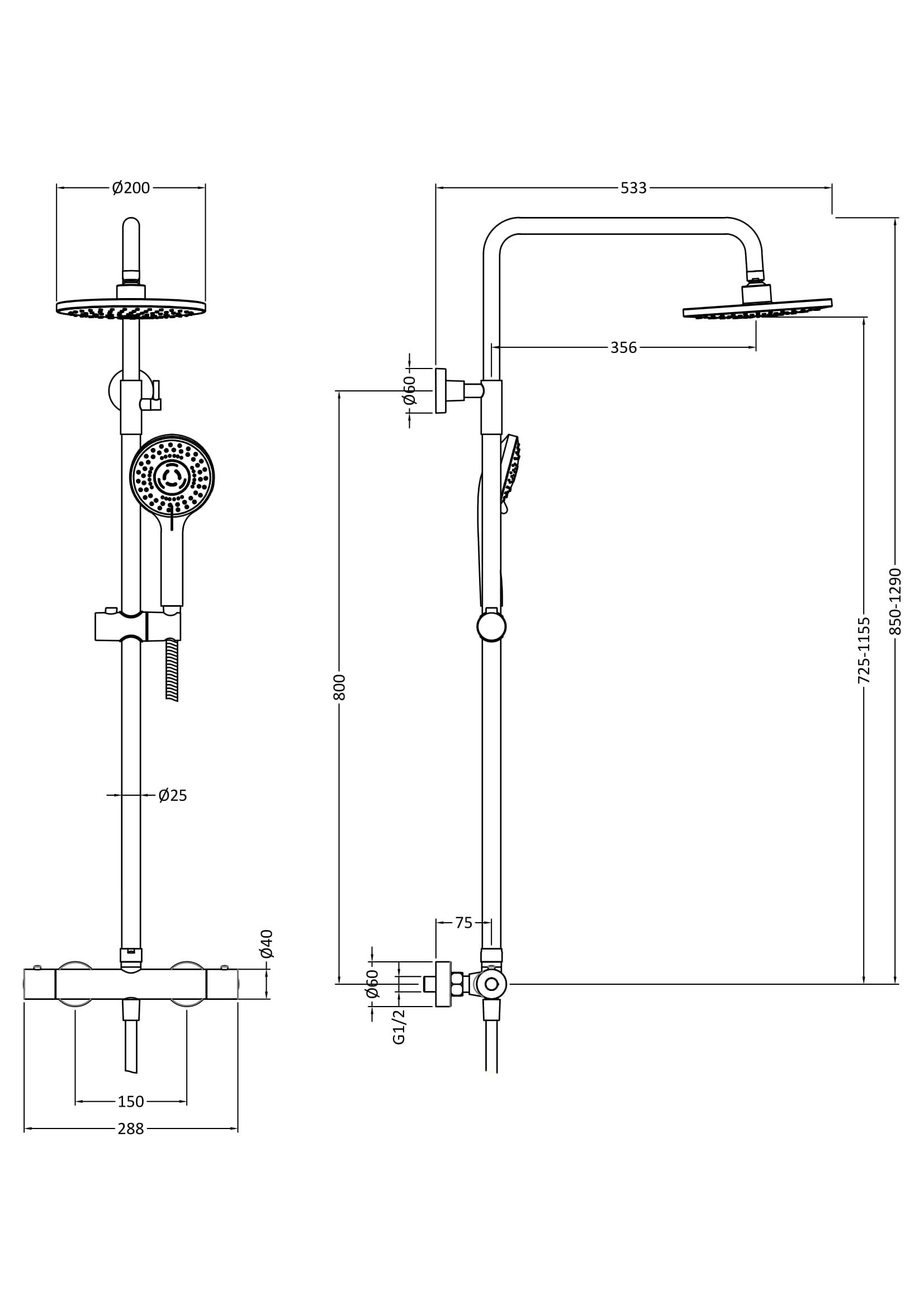 • Round shower head