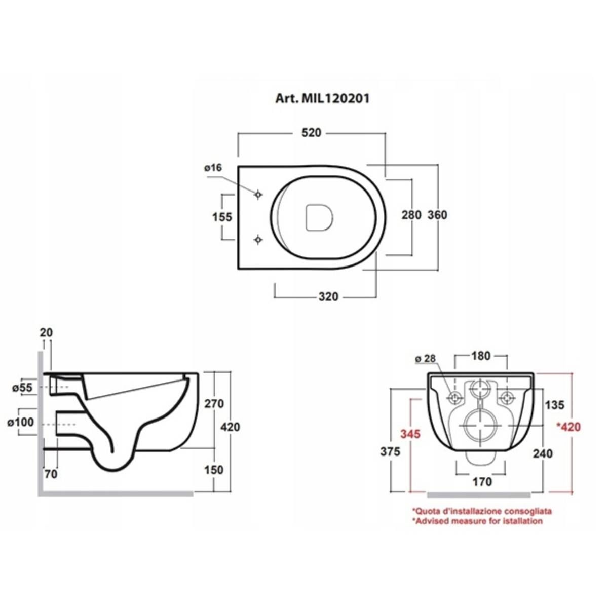 Olympia Milady Rimless Wall Hung Toilet & Soft Close Seat - Matt Grey