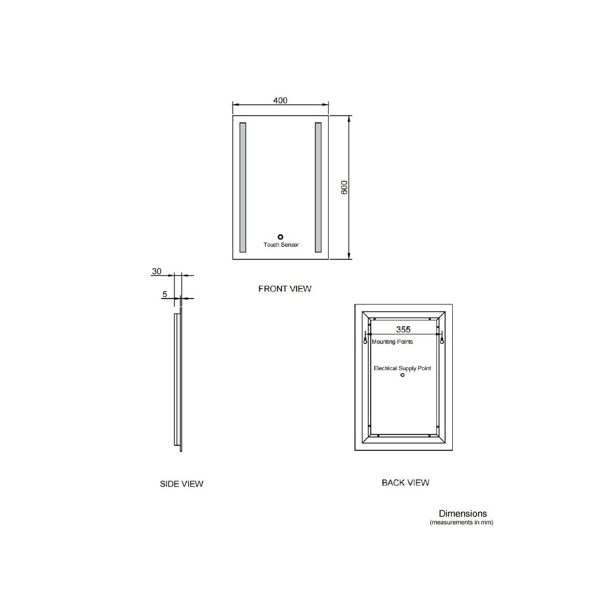 Measuring 600mm X 400mm, the Parallel LED Mirror has a modern rectangular shape and is a portrait-hung mirror which comes with in-built energy-efficient LED lighting €€œ activated by a handy touch sensor. The mirror also comes with an IP44 rating as standard, so is splashproof and ideal for bathroom use.