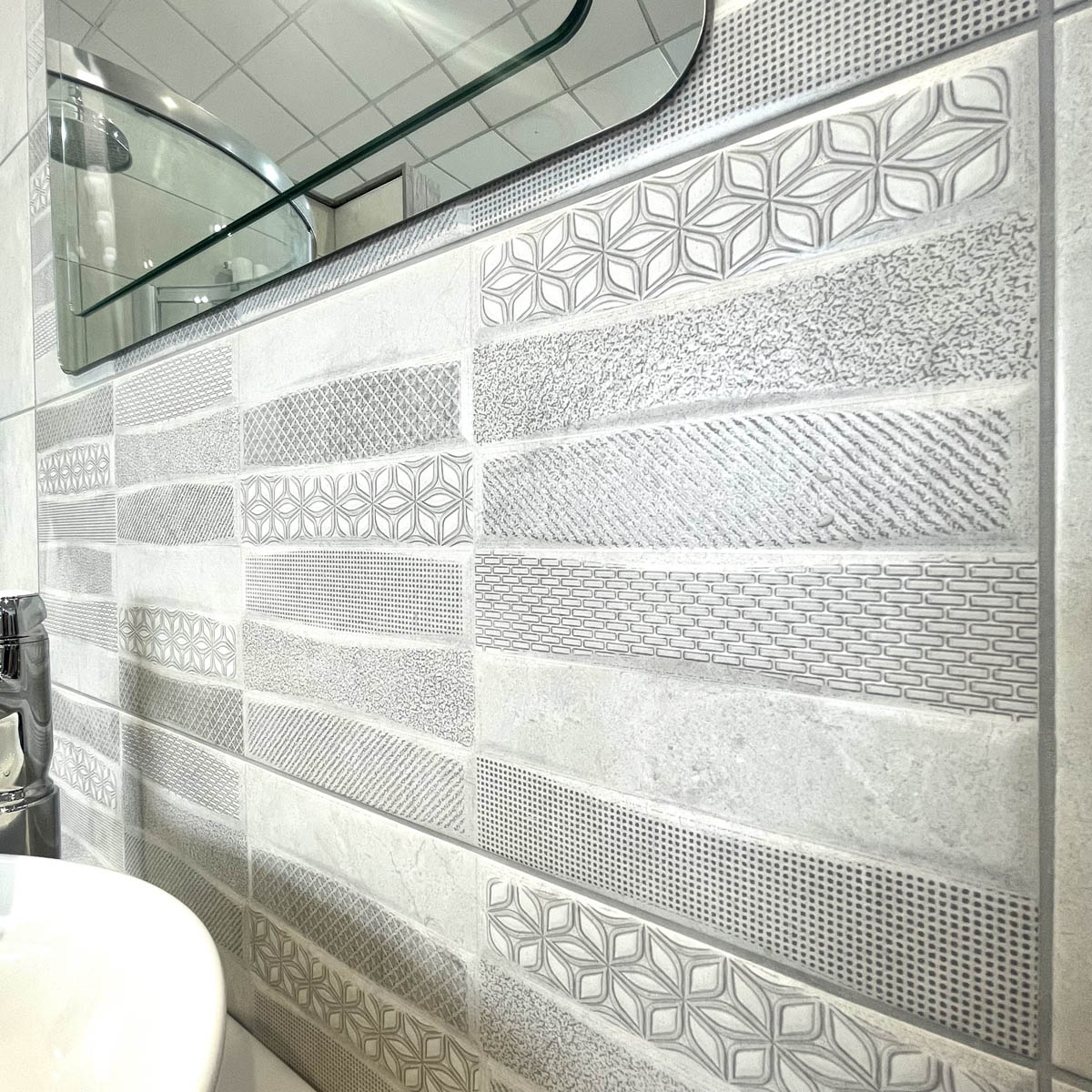 Valentina Brick Pearl Matt Decor 31.6 x 90.5cm Wall Tile - 1.43sqm perbox (13473) Grey